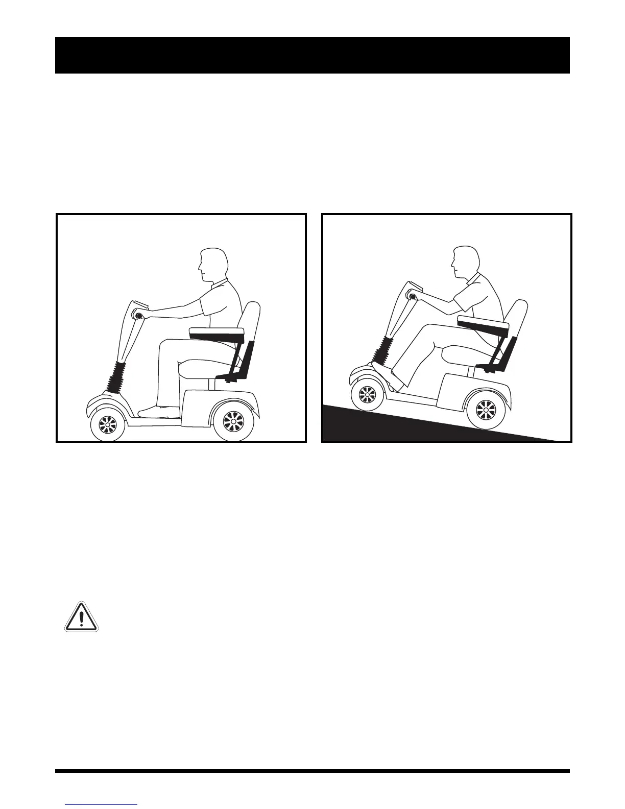powered scooter may "roll back" approximately 1 foot (30.48 cm) before the brake engages. If the