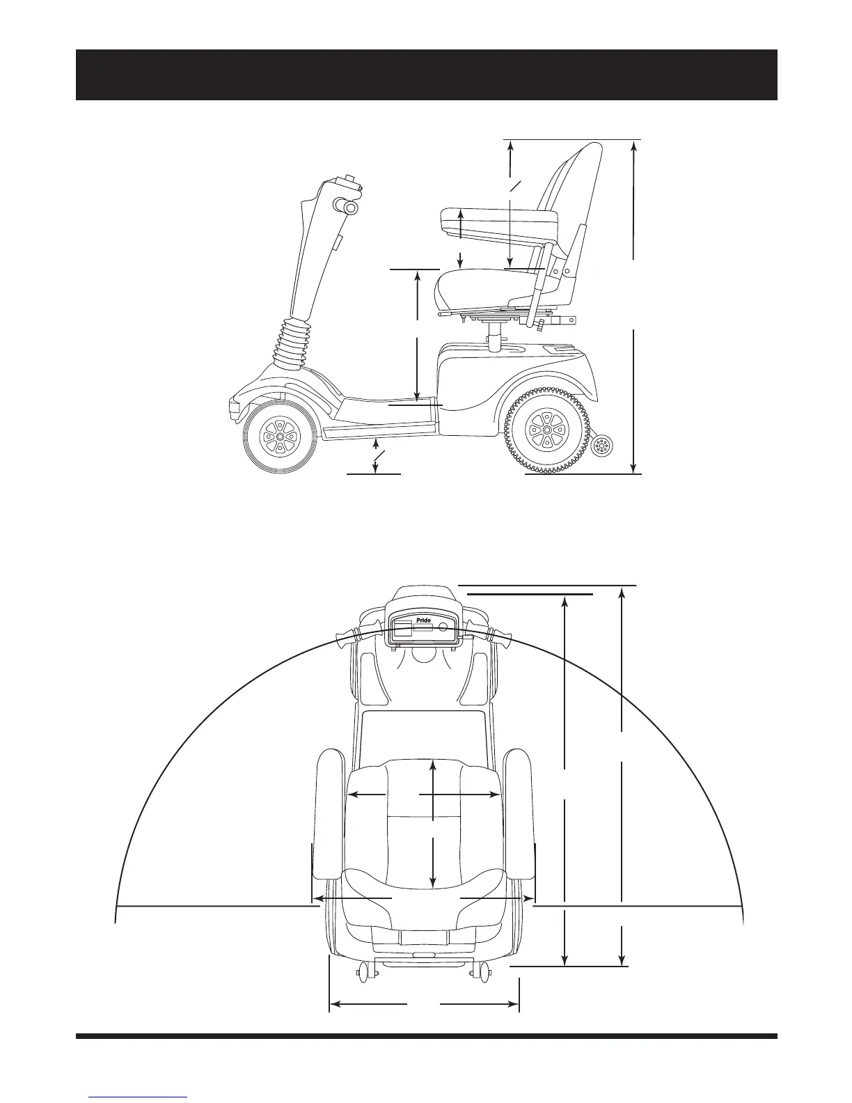 Pride Mobility Legend - SPECIFICATIONS; Legend Dimensions