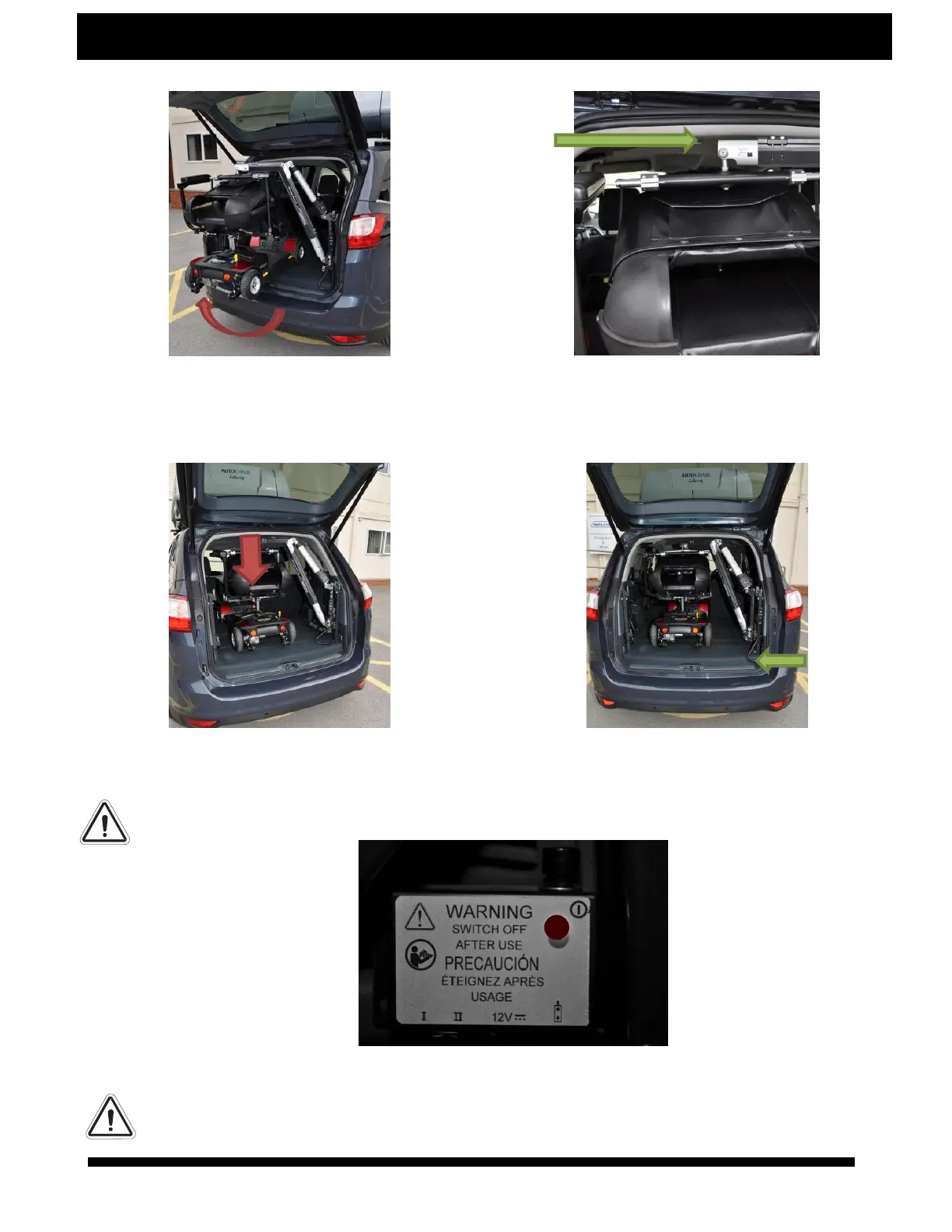 14. Carefully guide the scooter fully into the car - Ensure there is clearance for the boom to swing fully in