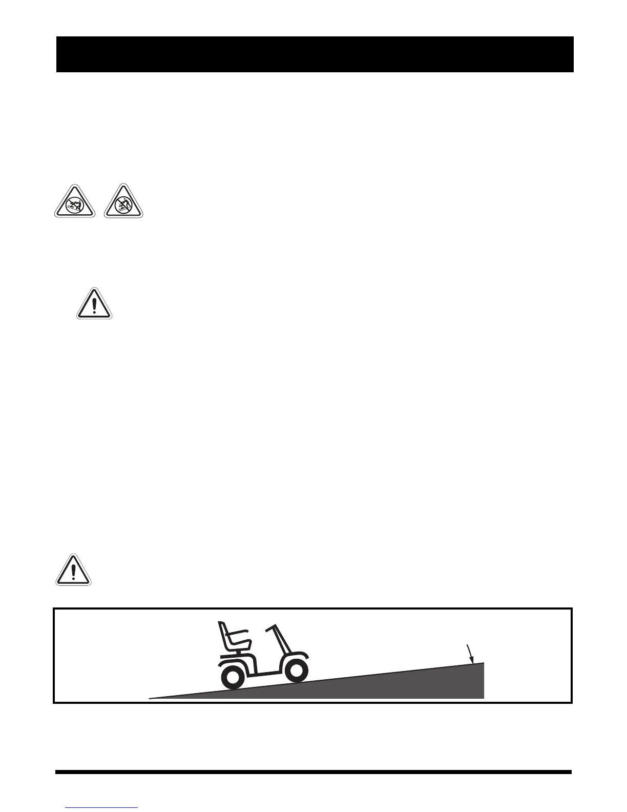 WARNING! Do not drive your scooter across the side of an incline or diagonally