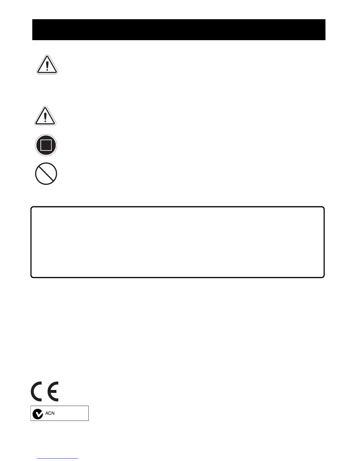 injury and/or equipment damage. On the product, this icon is represented as a black