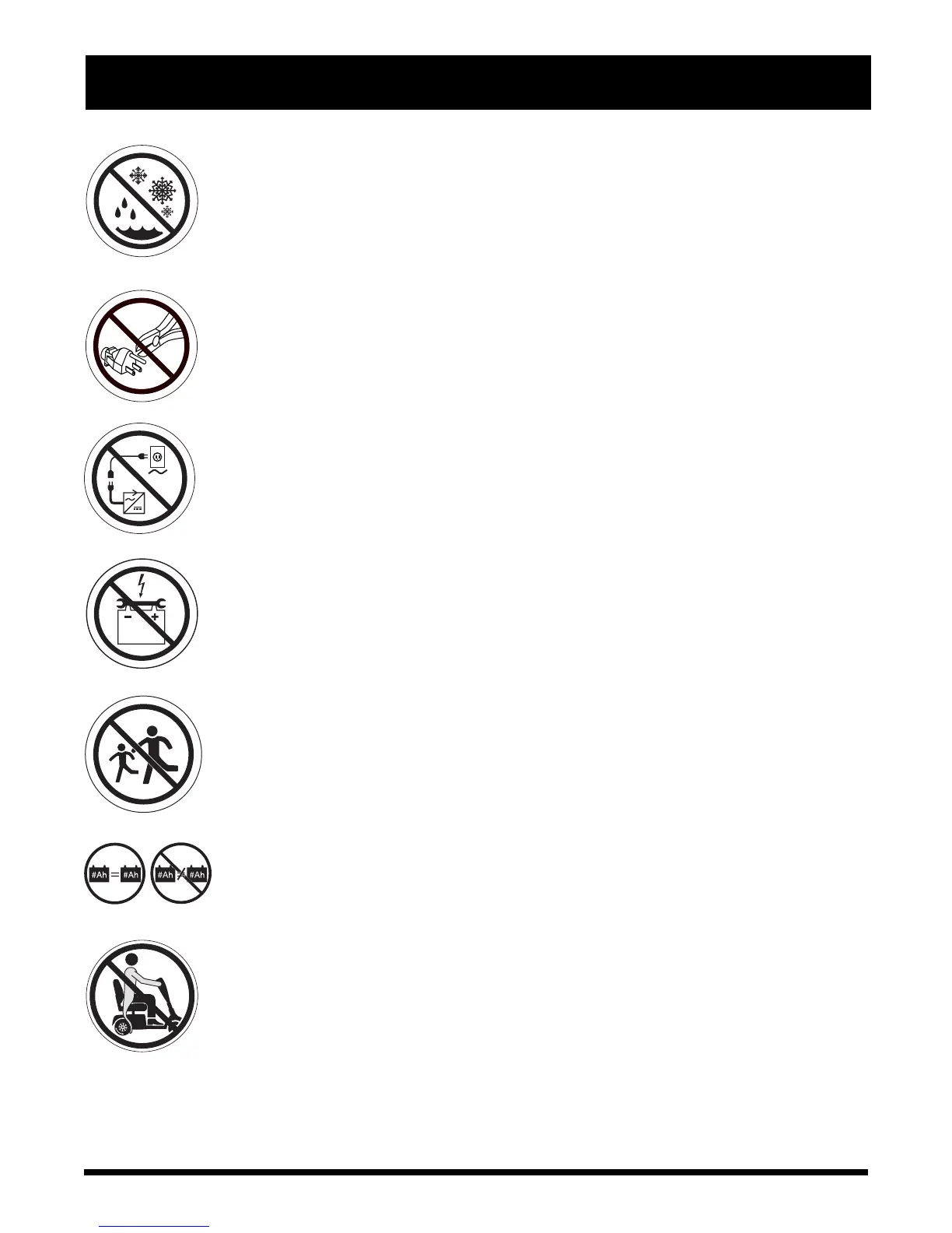 Do not use batteries with different amp-hour (Ah) capacities. Do not mix old and