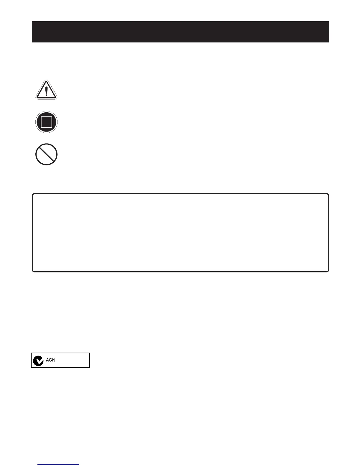 Performing a prohibited action can cause personal injury and/or equipment damage (black