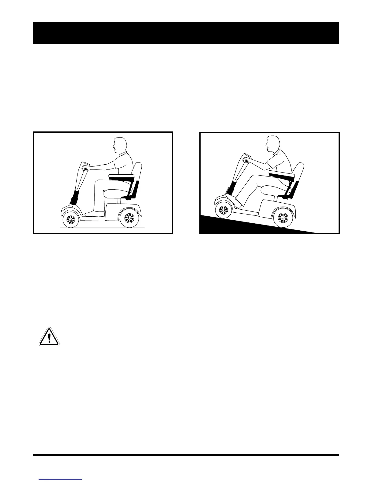 powered scooter may "roll back" approximately 30.48 cm (12 in.) before the brake engages. If the