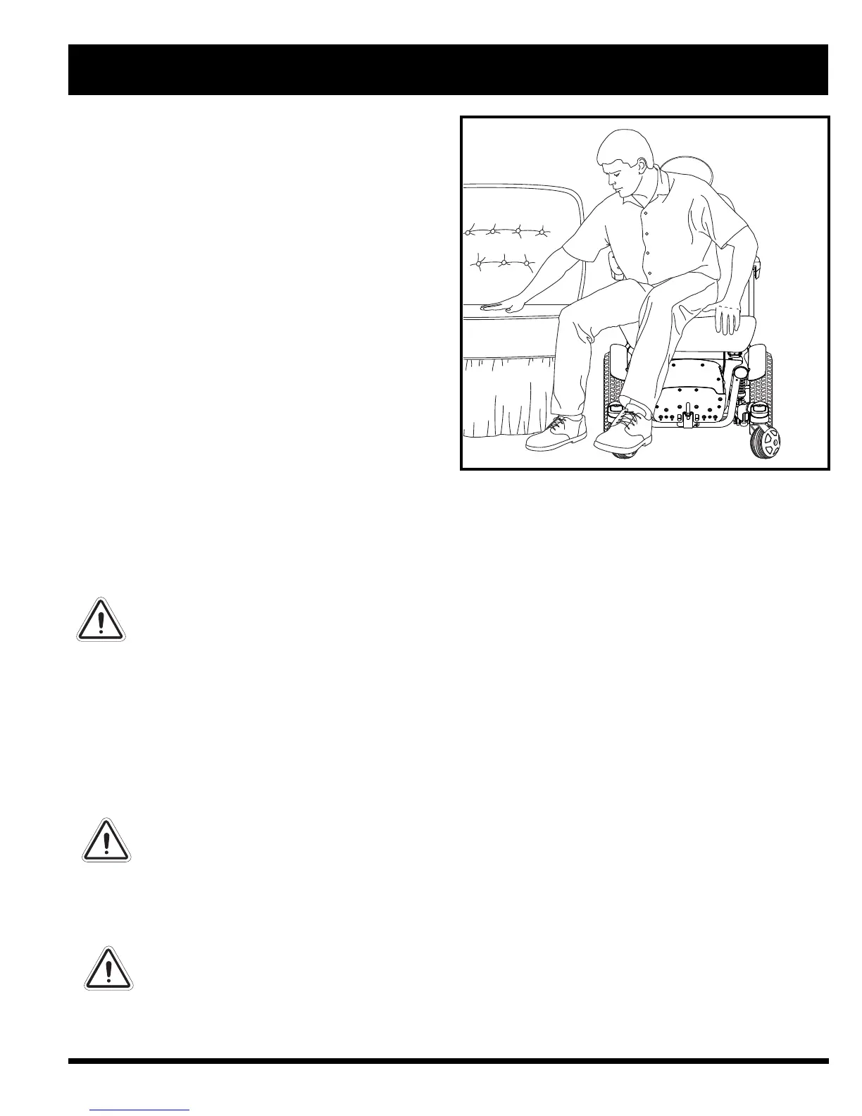 WARNING! Before transferring, position yourself as far back as possible in the power chair seat