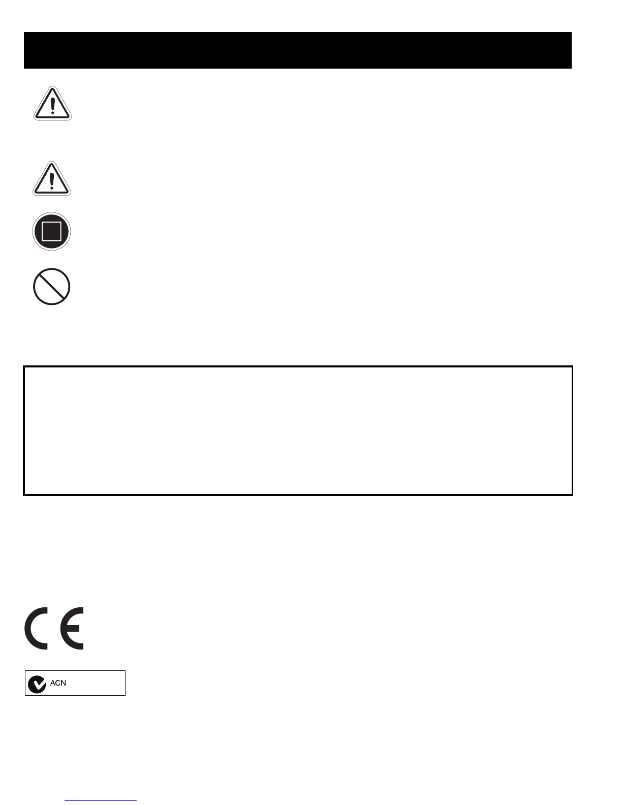 or in any circumstances. Performing a prohibited action can cause personal injury and/or