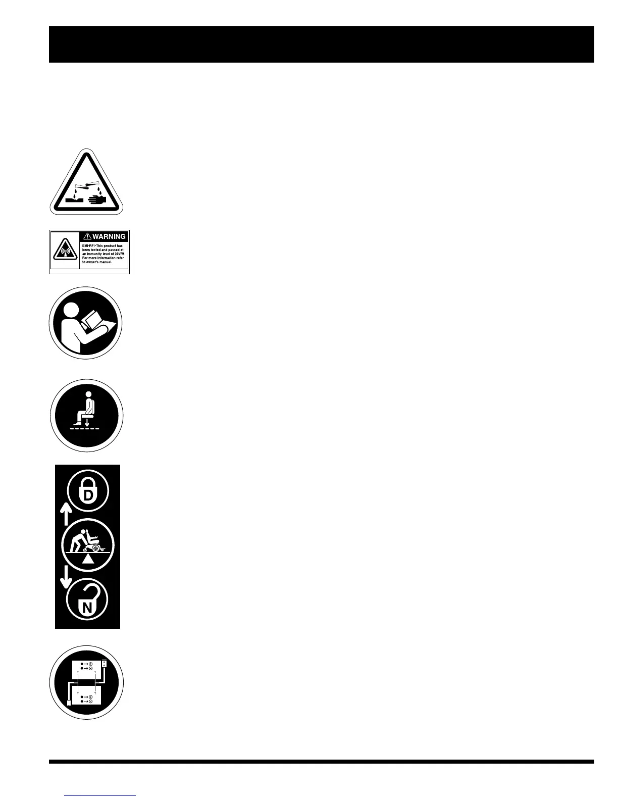 The symbols below are used on the power chair to identify warnings, mandatory actions, and prohibited actions. It is very