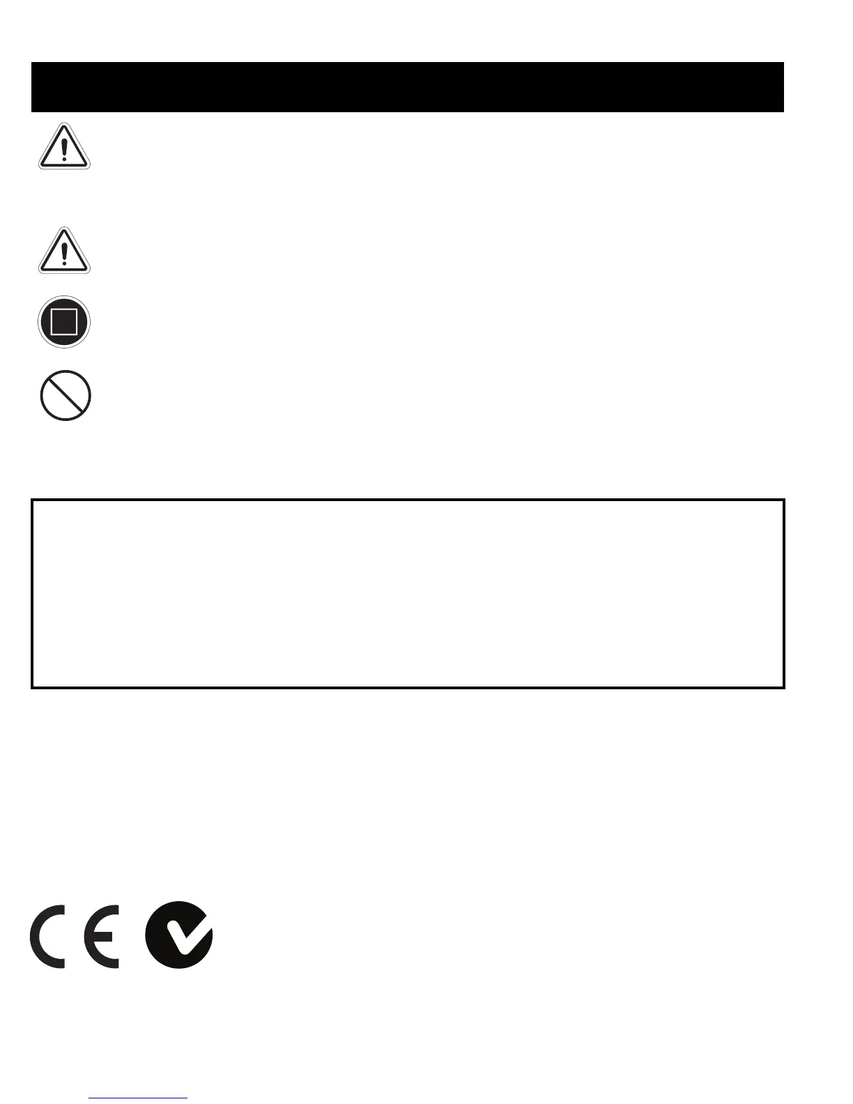 or in any circumstances. Performing a prohibited action can cause personal injury and/or