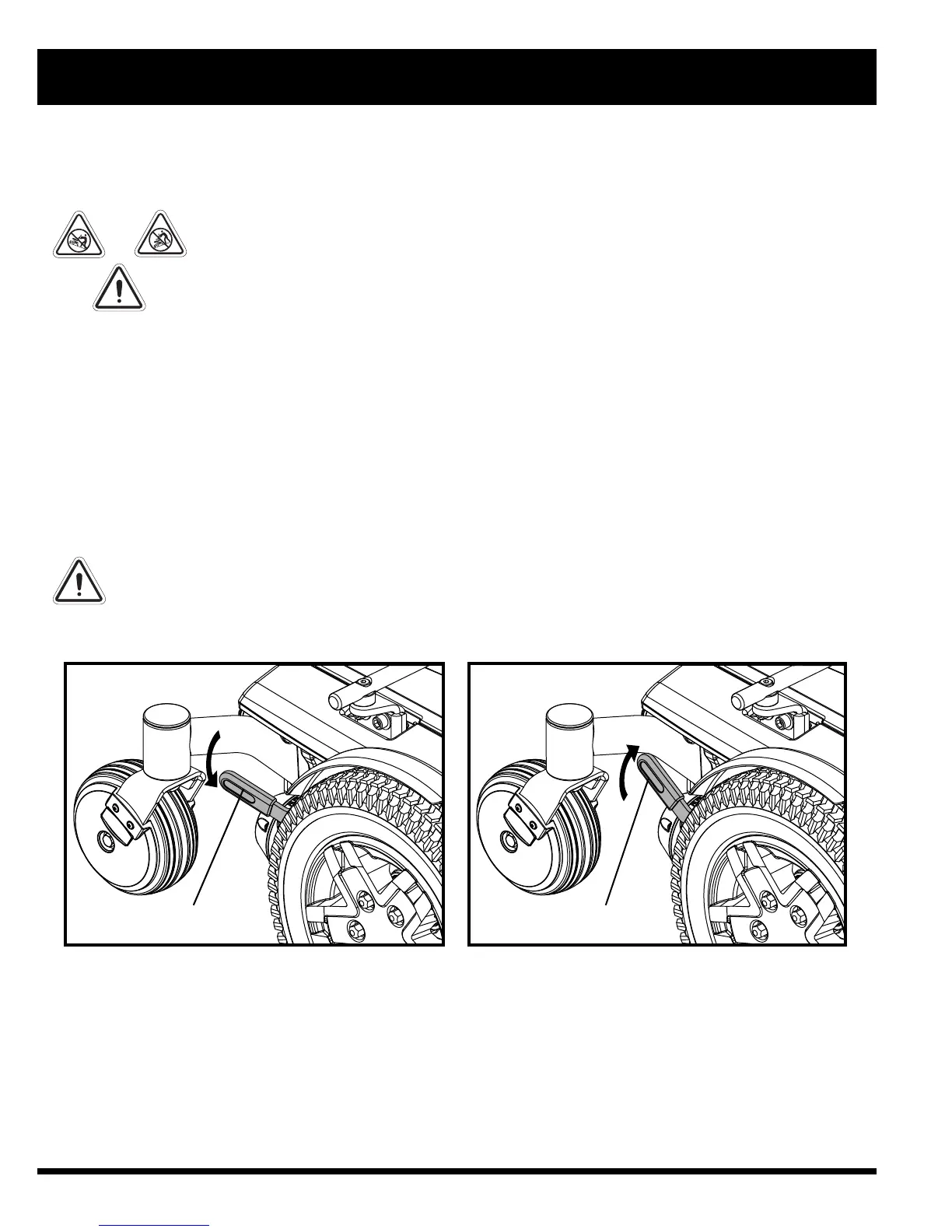 WARNING! Do not use your foot to operate the manual freewheel levers. Do not stand on the