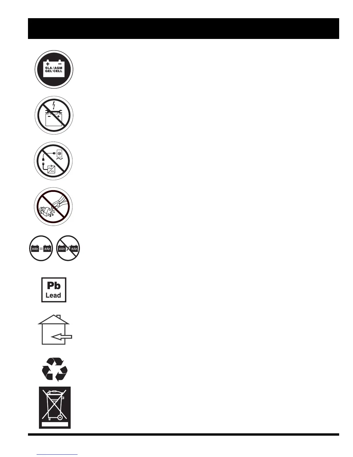 Use only AGM or Gel-Cell batteries to reduce the risk of leakage or explosive