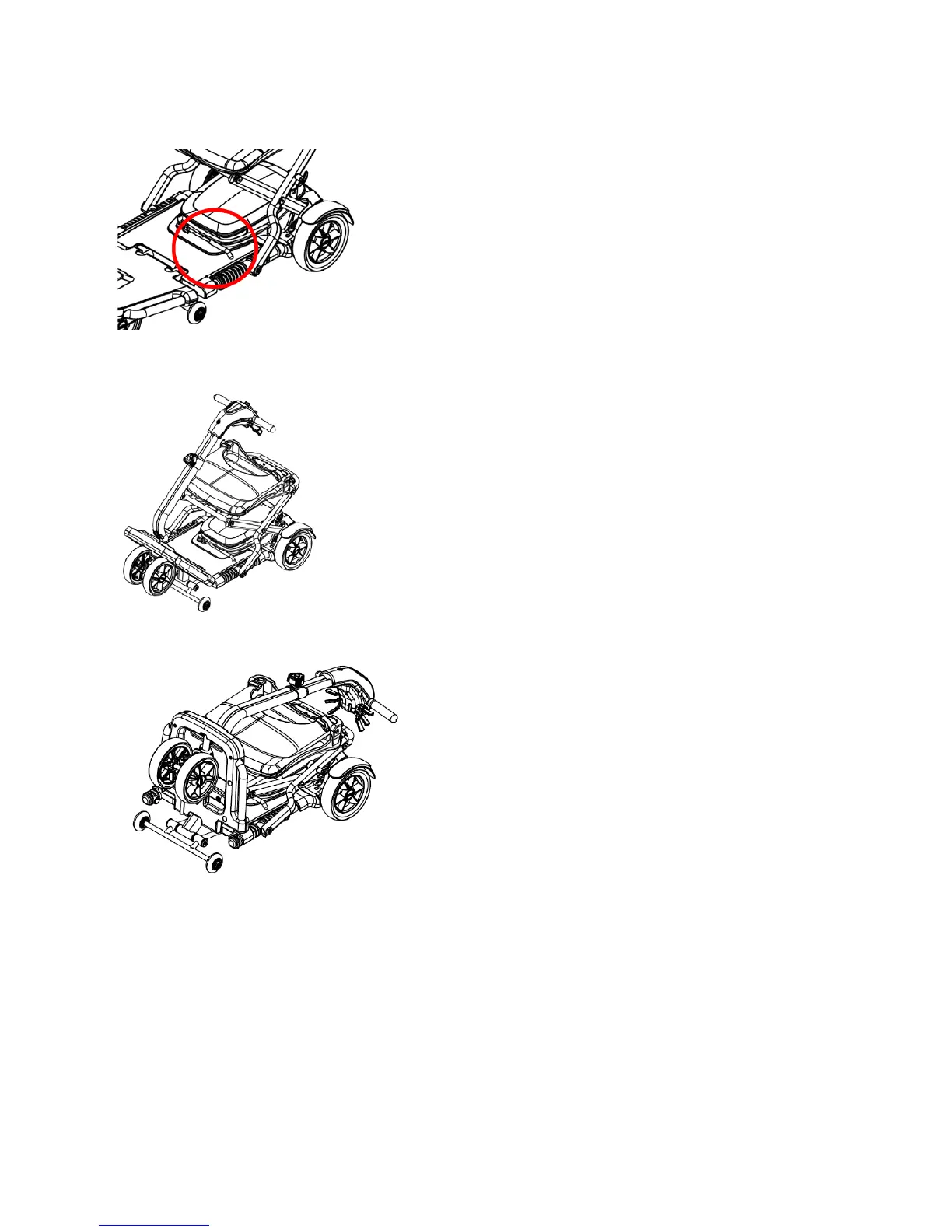 3) Lock the scooter onto the closed position by pushing the tiller down until a lock is heard.
