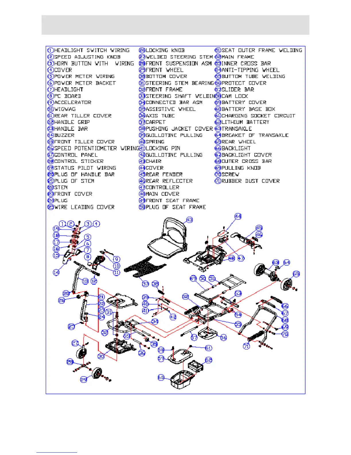 Pride Mobility QUEST - Bill of Materials (BOM) Drawing