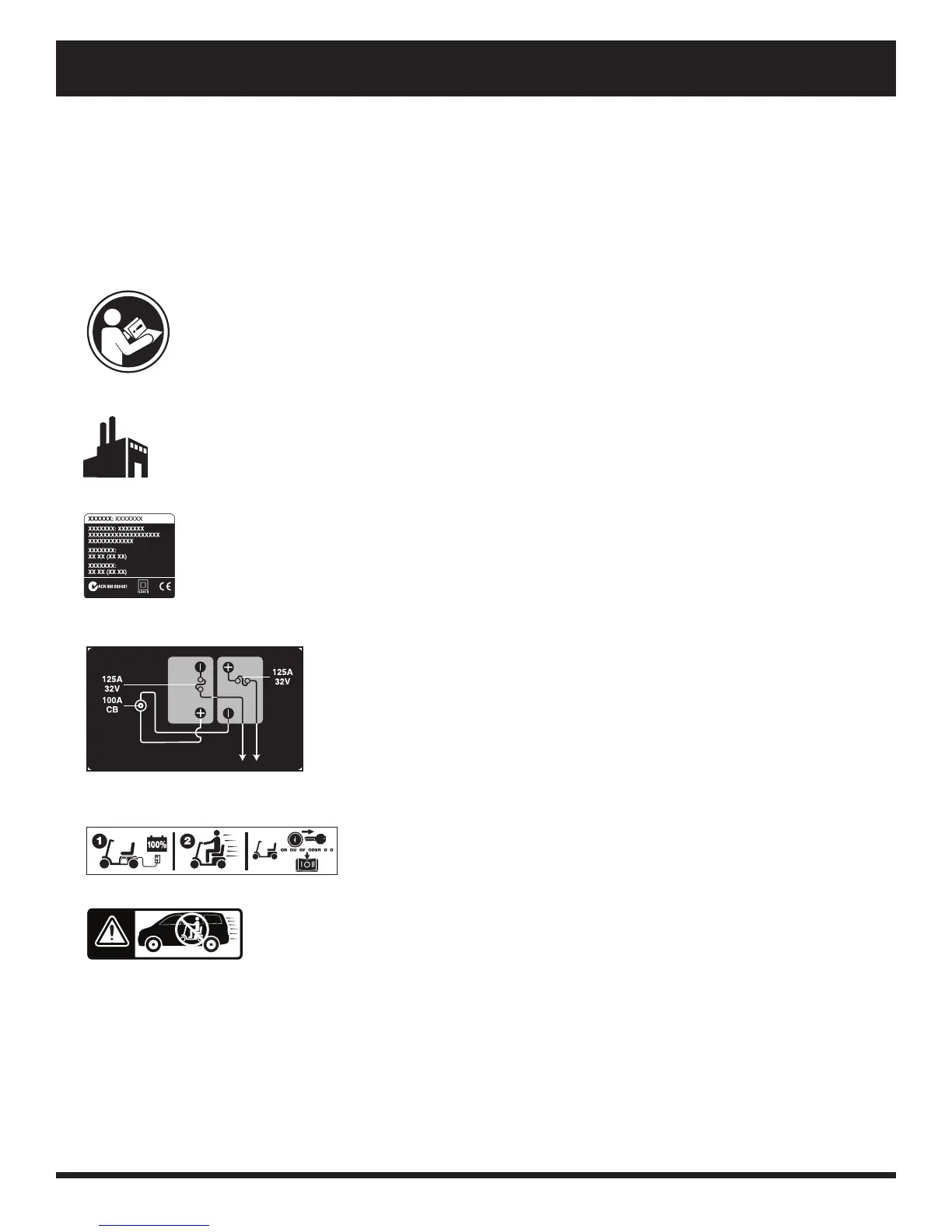 The symbols below are used on the scooter to identify warnings, mandatory actions, and prohibited