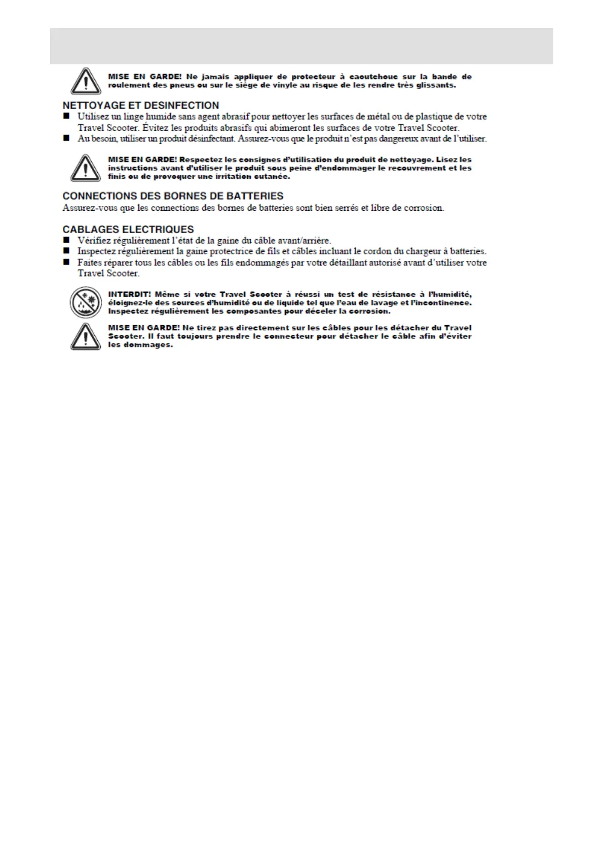 telle situation survient, il faut inspecter le boît ier de batteries pour évaluer la propreté et les dommages.