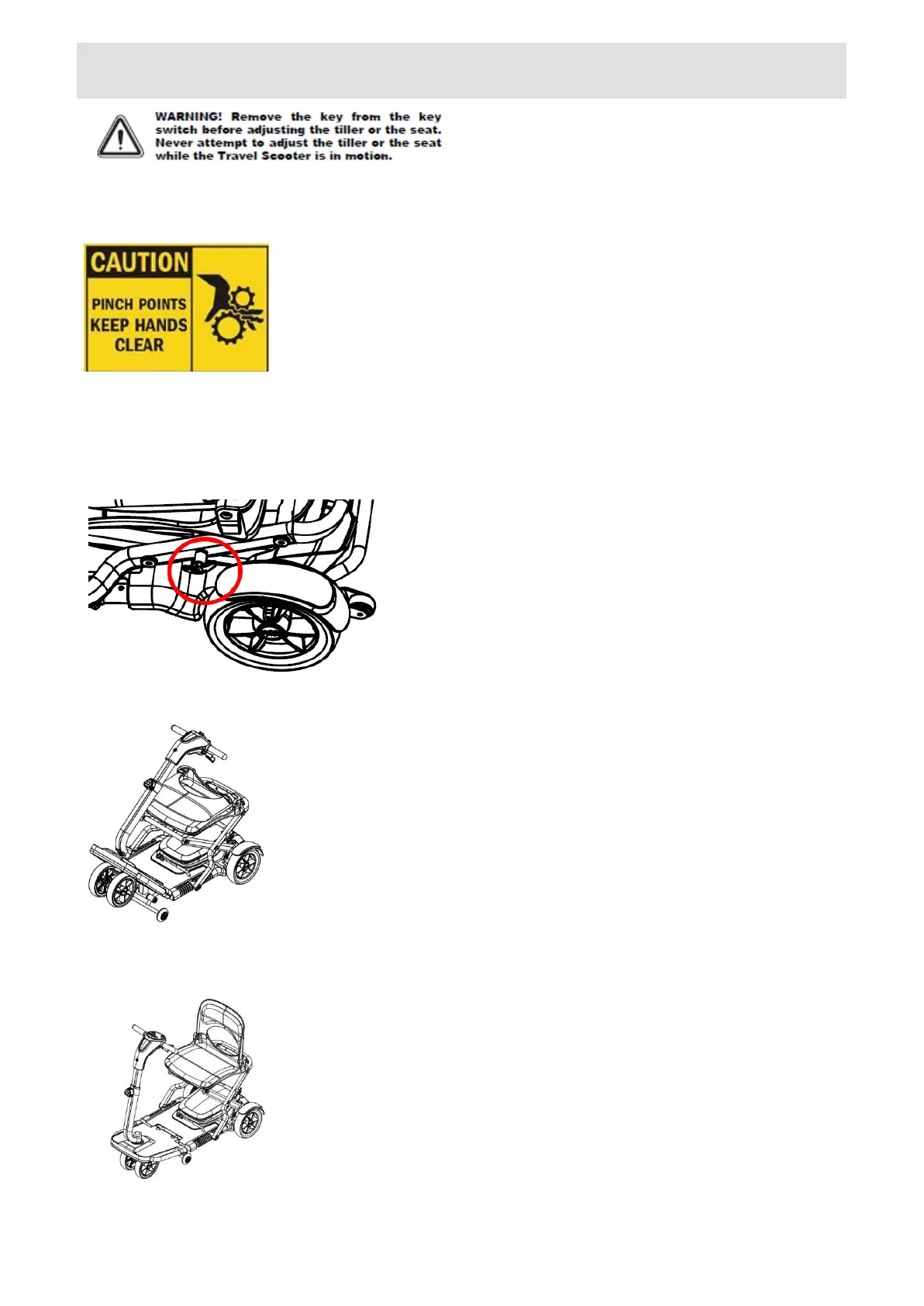 3) Lock the scooter onto the open position by pulling the seat up and pushing the tiller forward until
