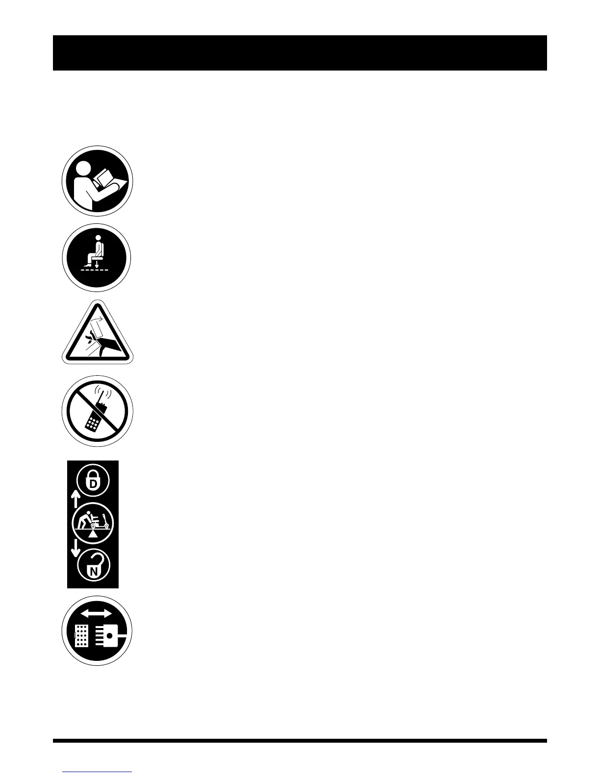 The symbols below are used on the scooter to identify warnings, mandatory actions, and prohibited actions. It is