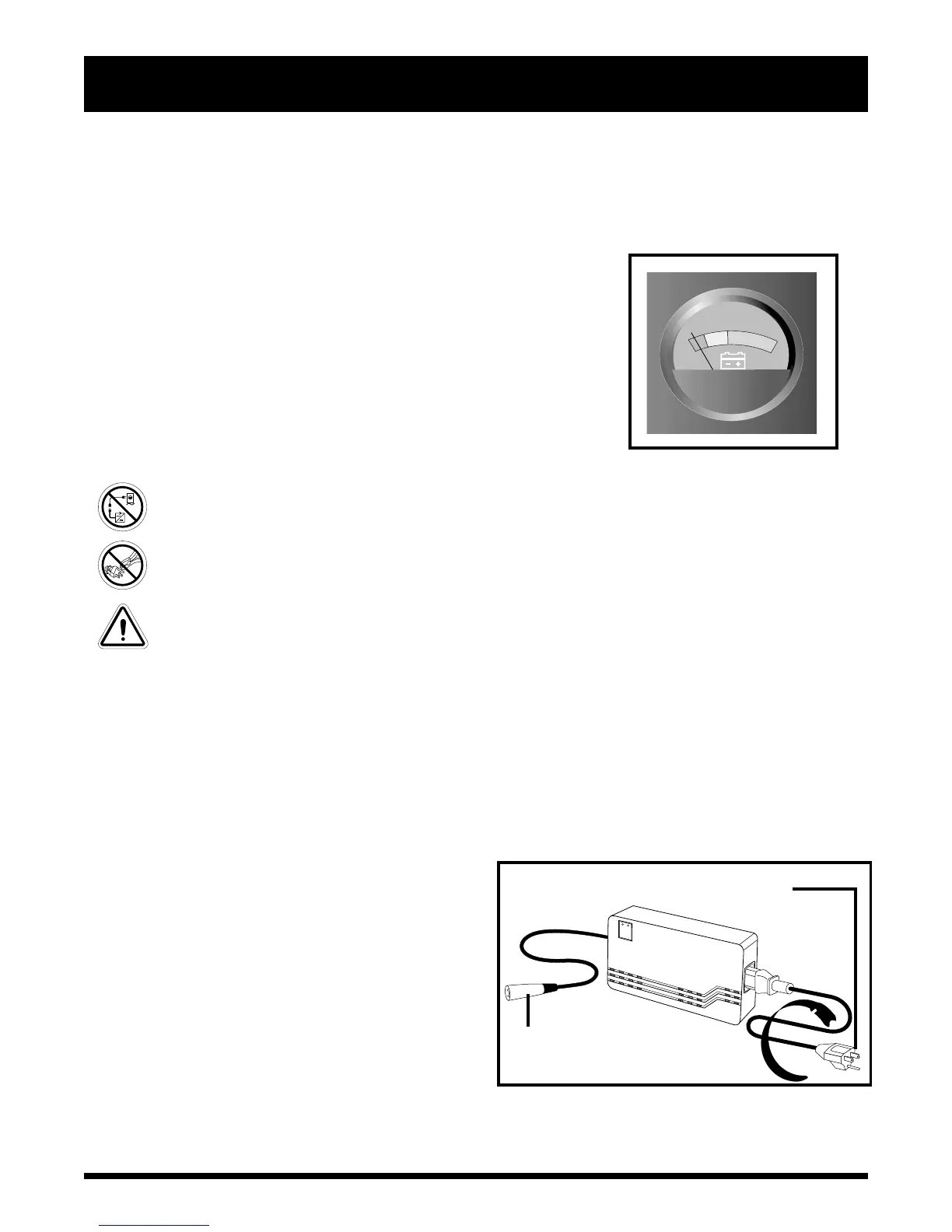PROHIBITED! Never use an extension cord to plug in your battery charger. Plug the