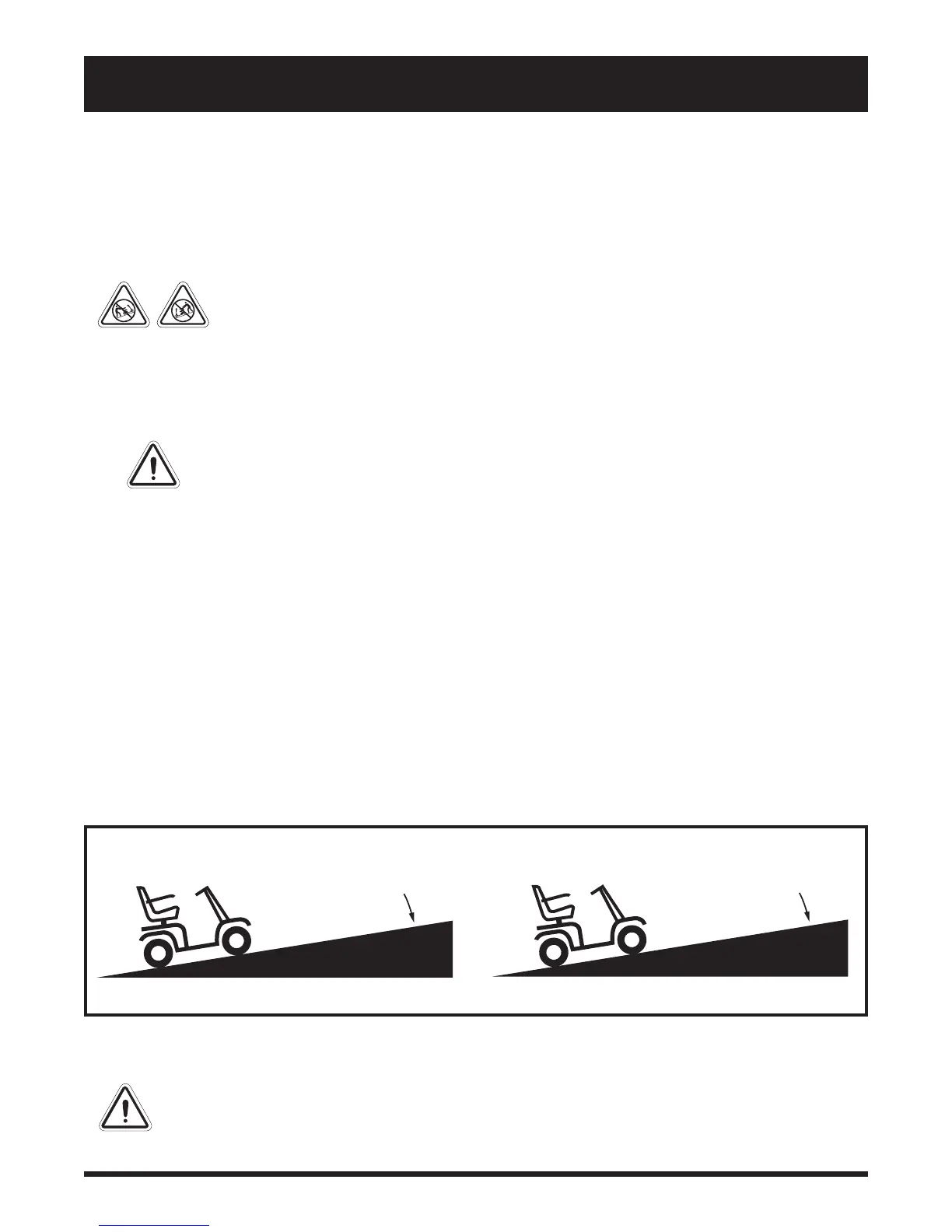 setting and driving in the forward direction only. If your Travel Scooter starts to move down the incline faster than