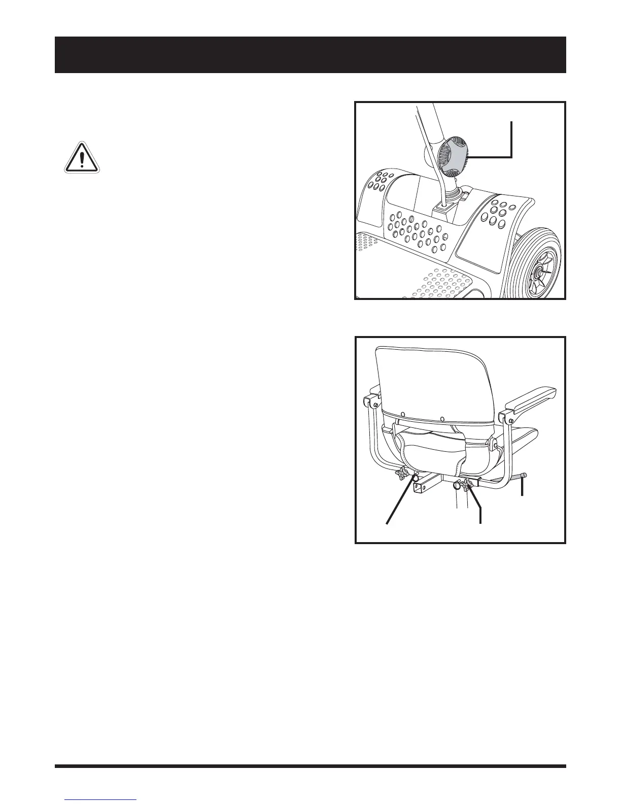 seat. Never attempt to adjust the tiller or
