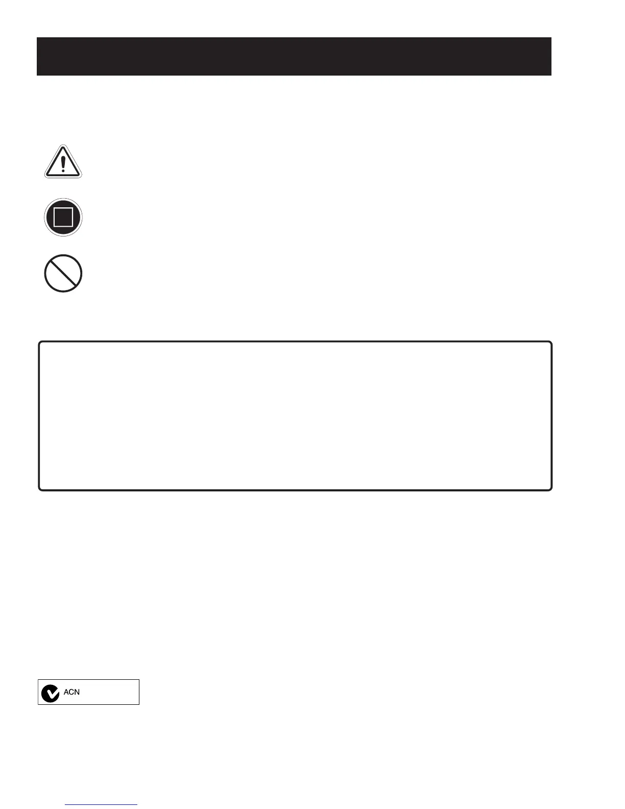 Performing a prohibited action can cause personal injury and/or equipment damage (black