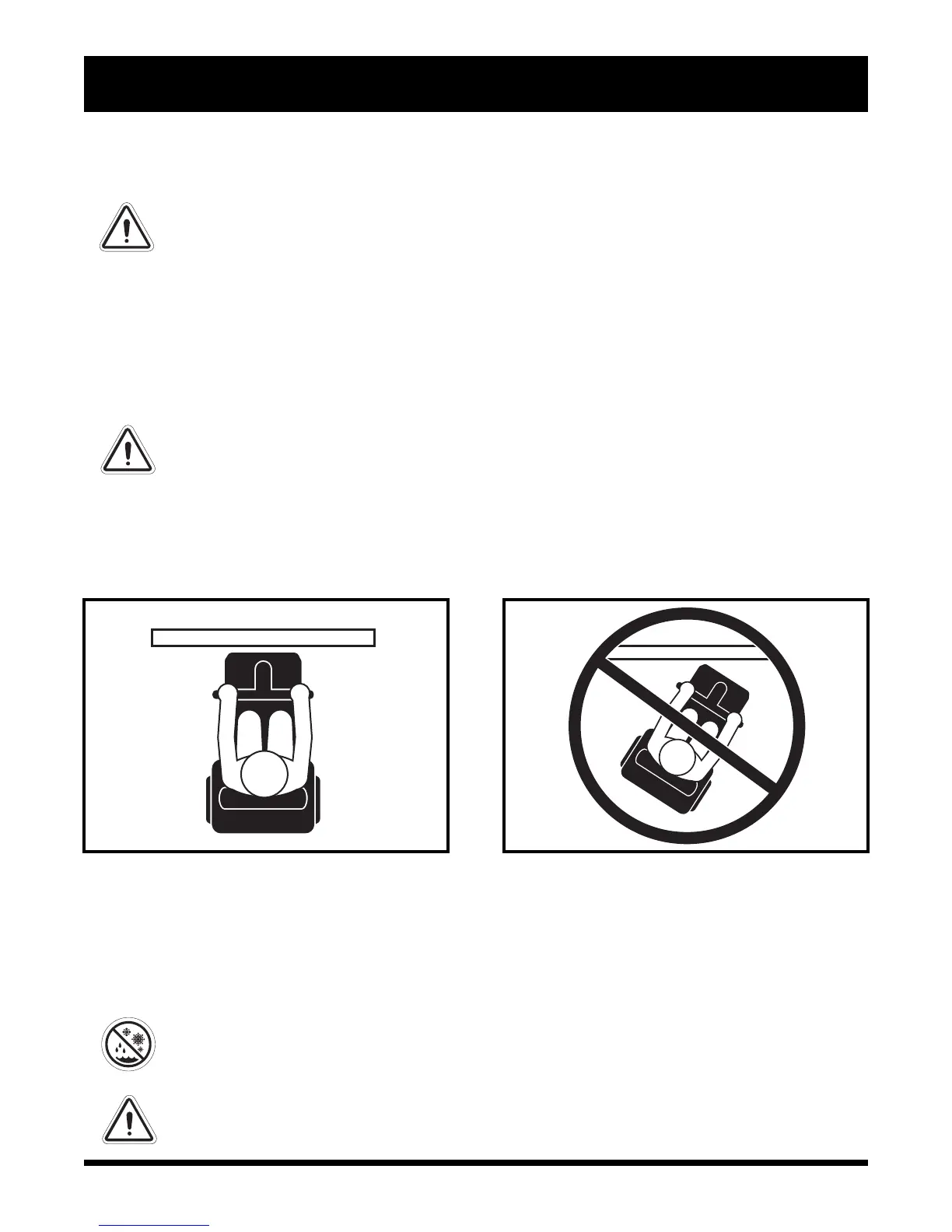 PROHIBITED! Operating in rain, snow, salt, mist/spray conditions, and on icy/slippery