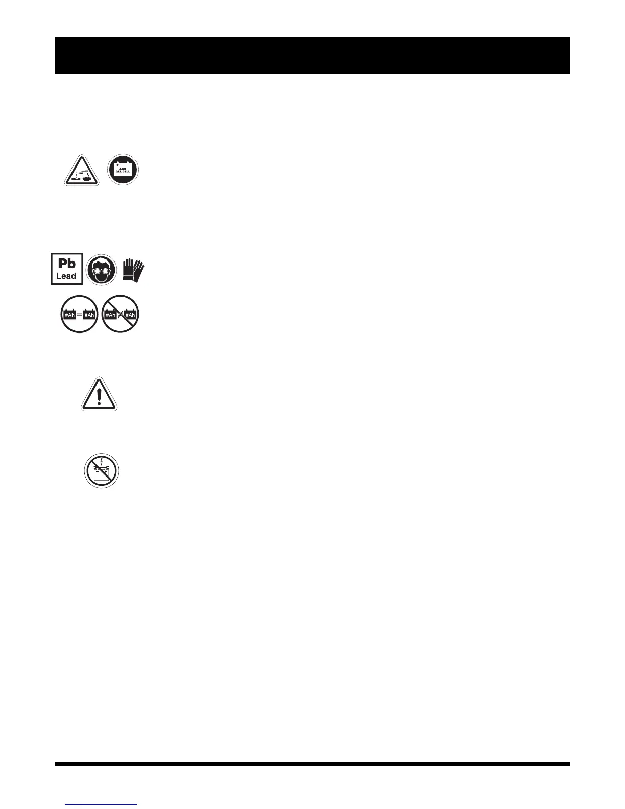 WARNING! Corrosive chemicals are contained in batteries. Use only AGM or Gel-