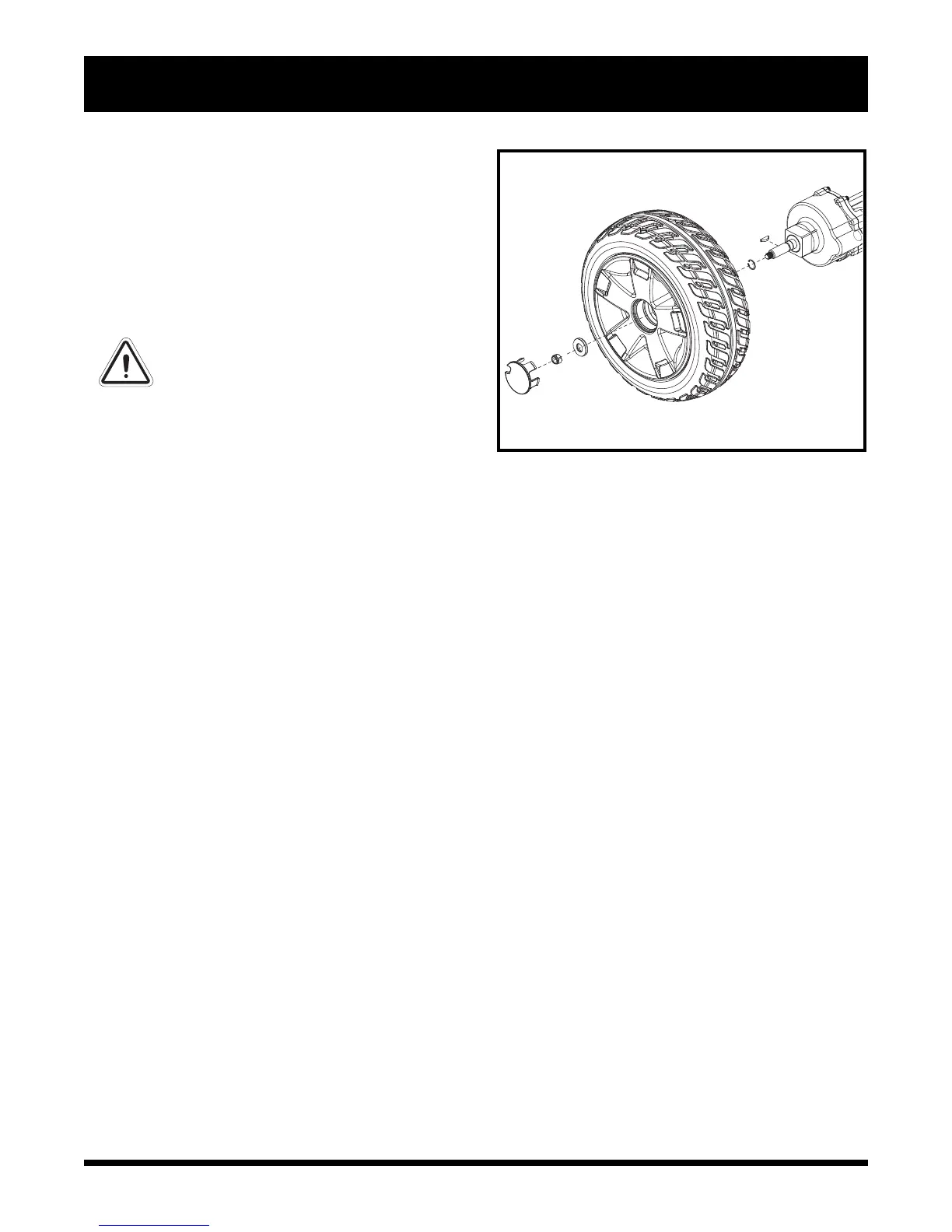 6. Reinstall the drive wheel nut and washer onto the