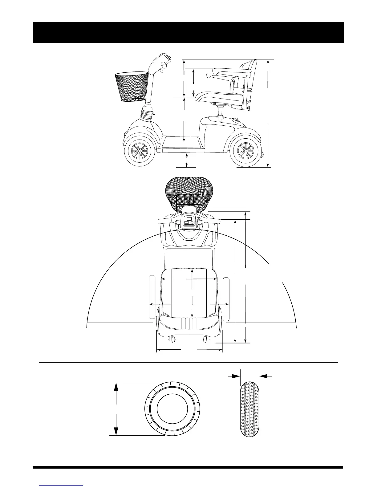 Pride Mobility Victory - Scooter Specifications and Dimensions; Victory Scooter Overall Dimensions; Victory Tire Dimensions
