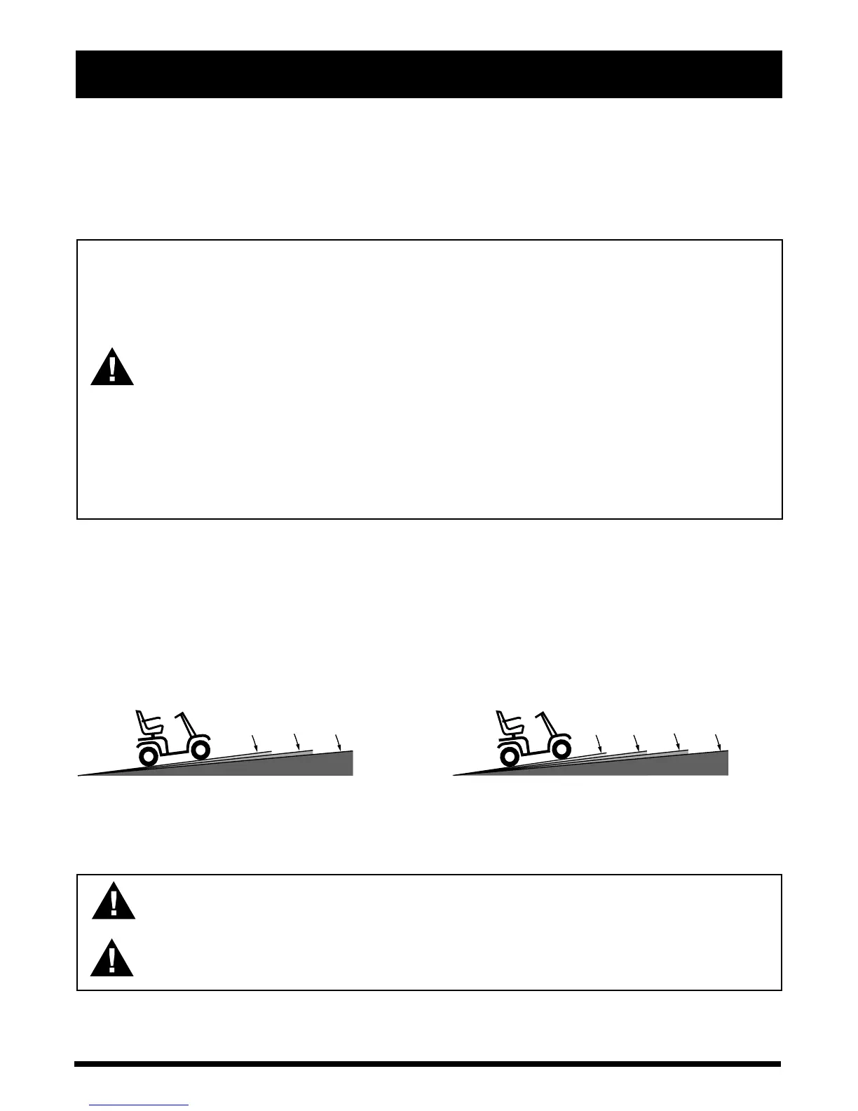incline. Drive your scooter straight up the incline. This greatly reduces the possibility of a