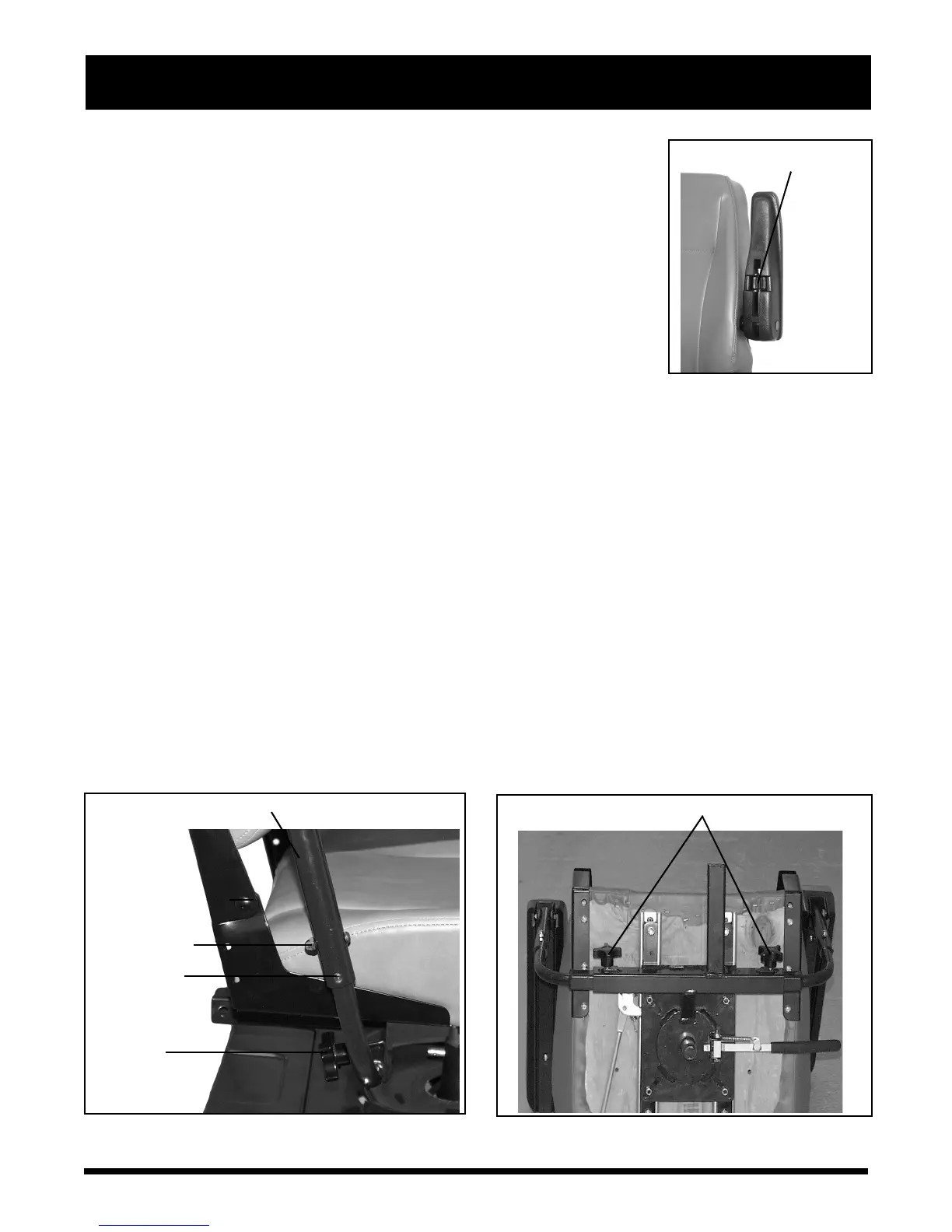 1. Loosen the armrest adjustment knobs at the back of the seat frame. See figures 15 and 16.