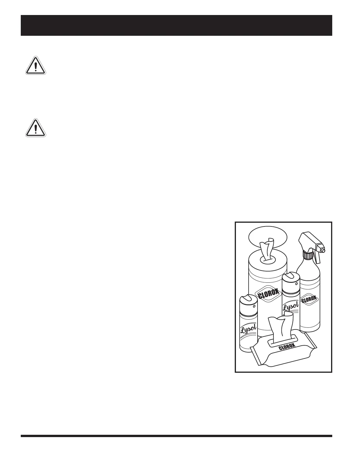 ● Para plástico y metal, use el aerosol / toallitas desinfectantes Lysol®/