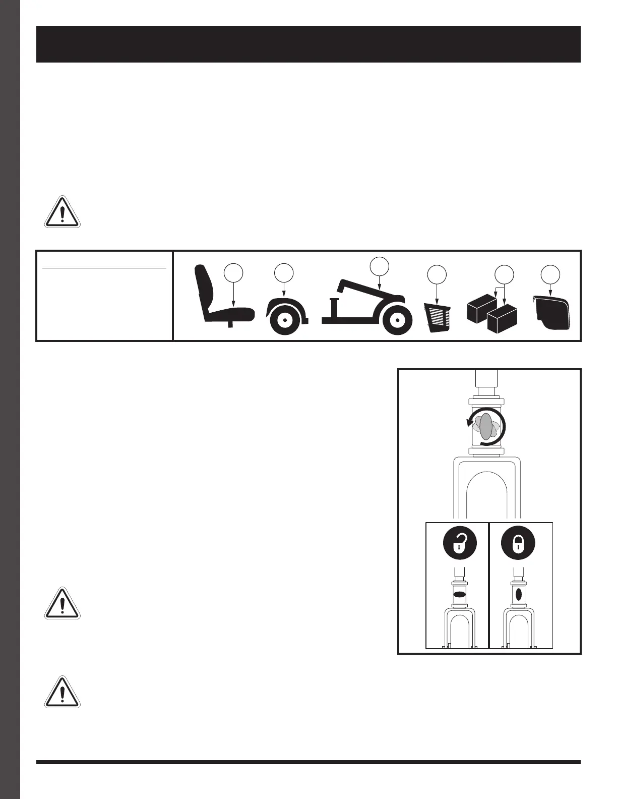 MISE EN GARDE! Ne soulevez pas le siège ou scooter par les accoudoirs. Ils peuvent pivoter et