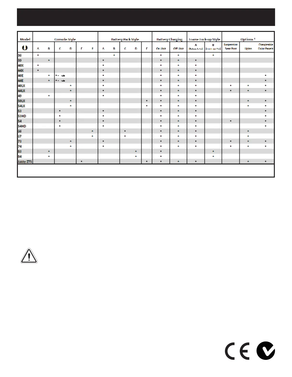 number (far left-hand column on Travel Scooter Features Table). Knowing your unit’s model number will aid you in