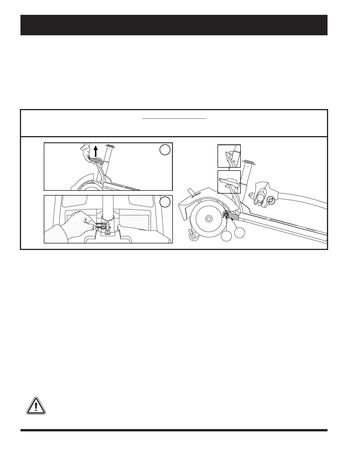 WARNIN G! Aft e r a sse mbly, m ake a bsolute ly c e r t ain the t ille r lock k nob is in t he unlocked