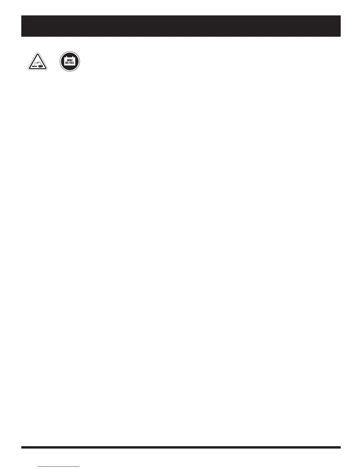 WARNING! Corrosive chemicals contained in batteries. Use only AGM or Gel-Cell