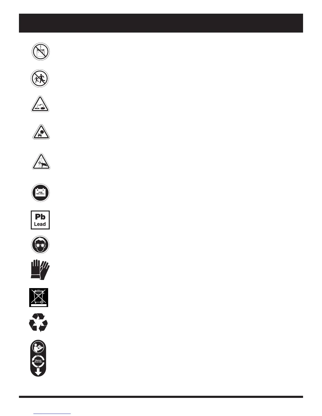 Use only AGM or Gel-Cell batteries to reduce the risk of leakage or explosive conditions.