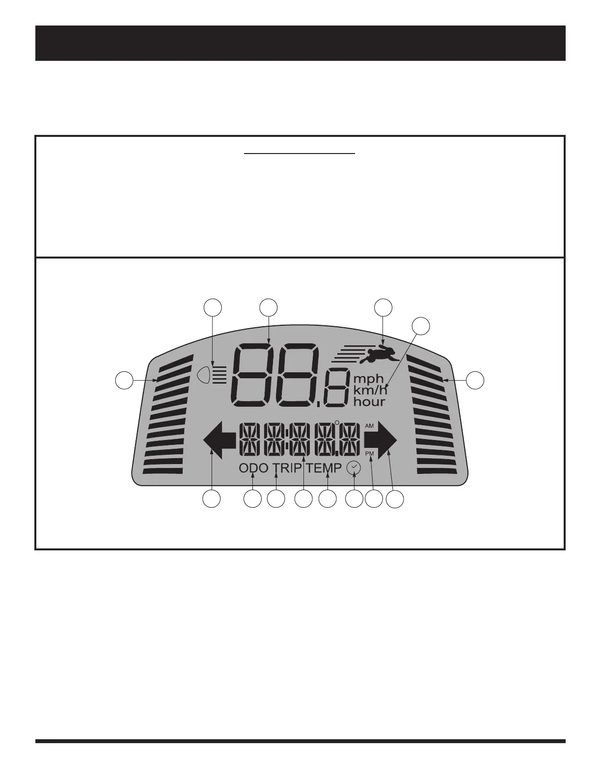 11. DISTANCE/TIME/TEMP/ERROR MESSAGE