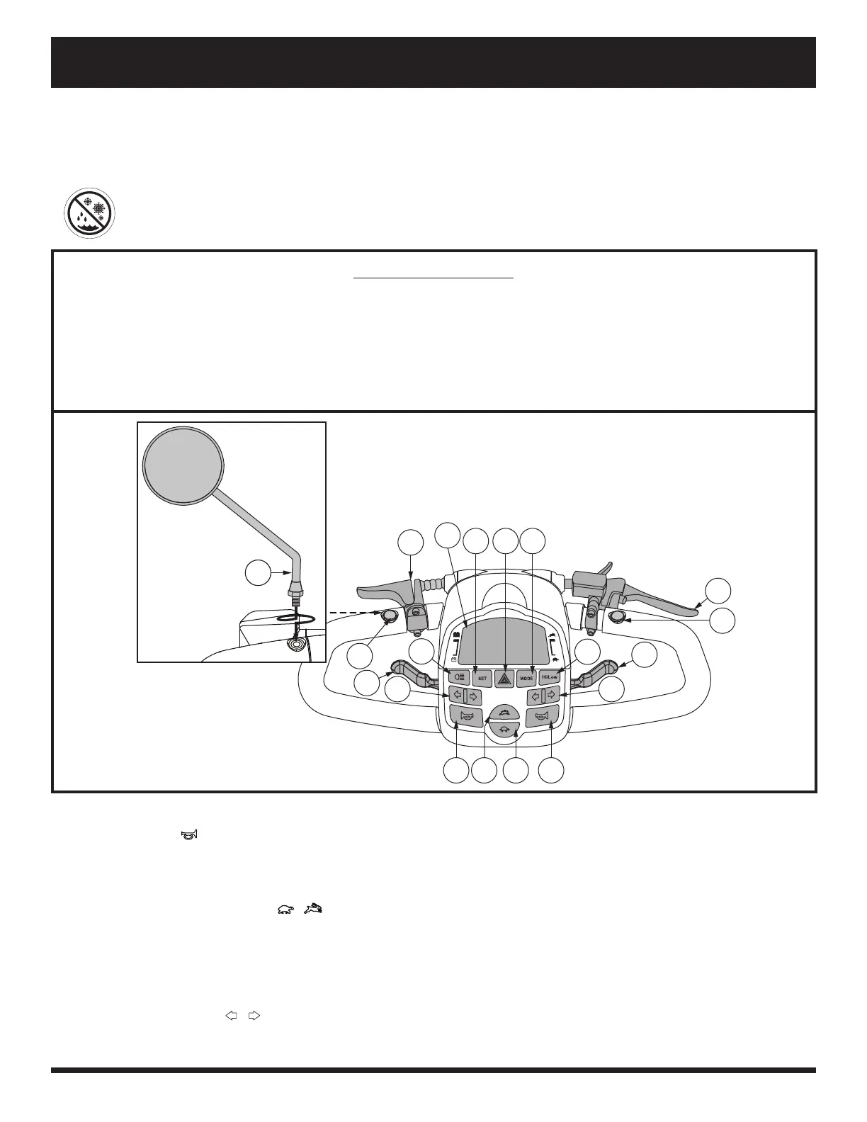 PROHIBITED! Do not expose the tiller console to moisture. In the event that the tiller console