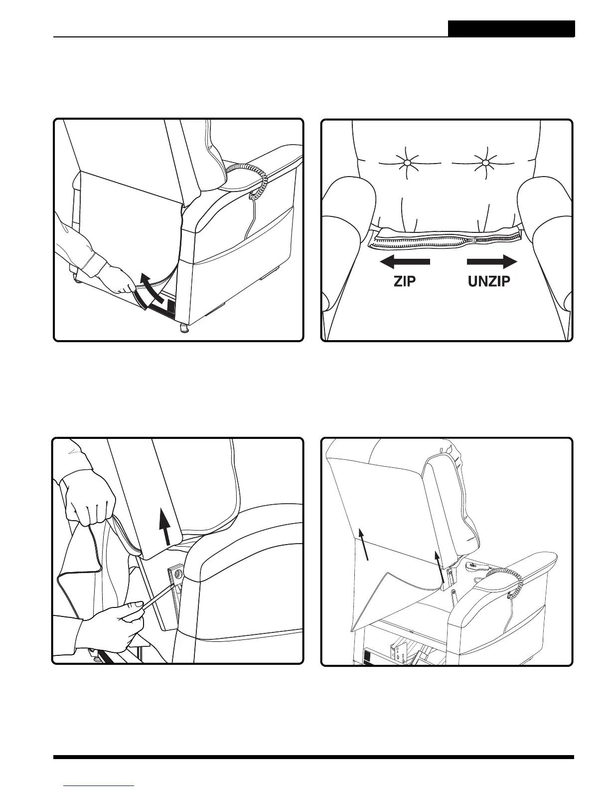 4.3.2 For C6 Lift Chairs, unzip the chair-back from