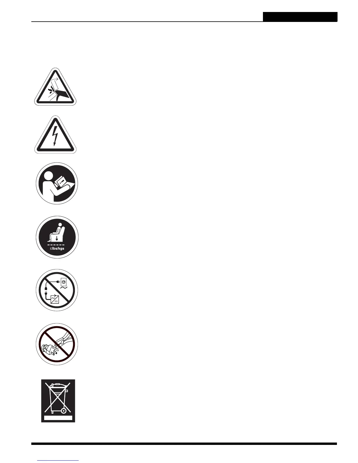 Die folgenden Symbole sind an Ihrem Elektromobil angebracht, um auf Warnungen, notwendige Maßnah-