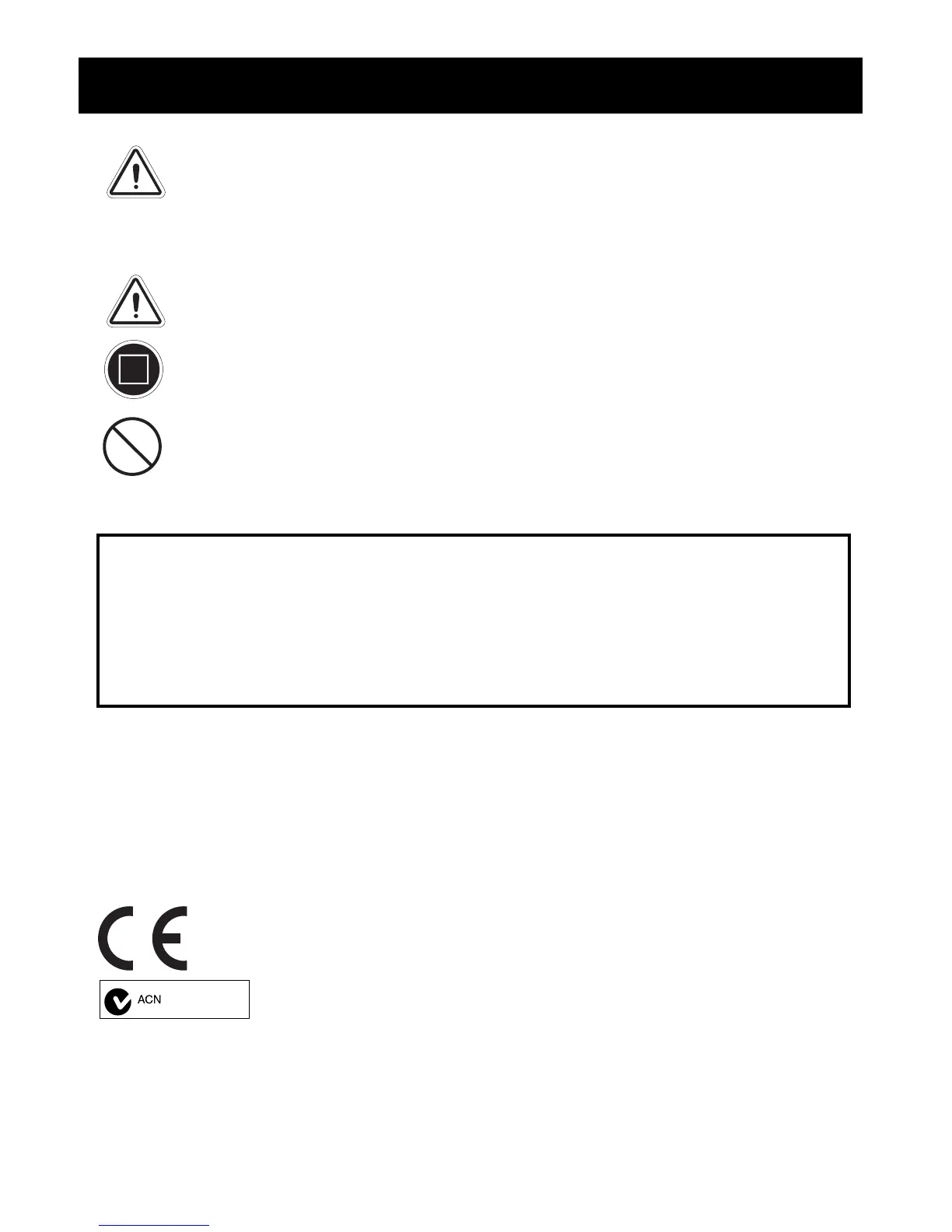 injury and/or equipment damage. On the product, this icon is represented as a black
