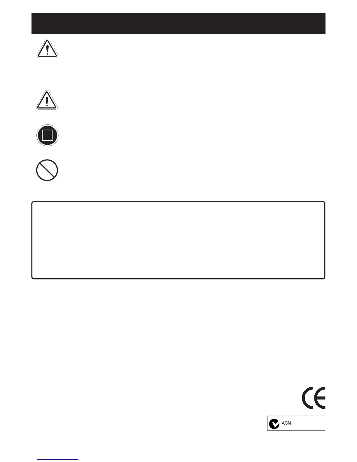 injury and/or equipment damage. On the product, this icon is represented as a black