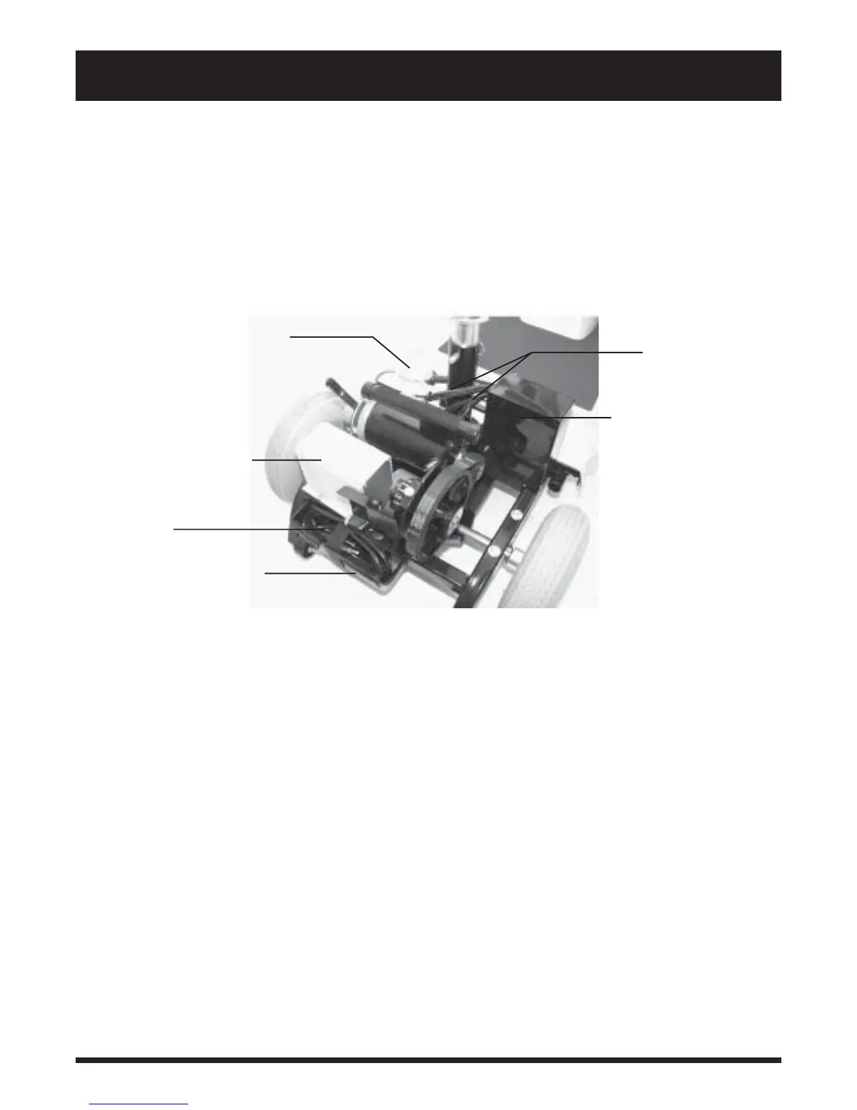 The onboard battery charger, the charger power cord receptacle, the batteries, the electronic controller