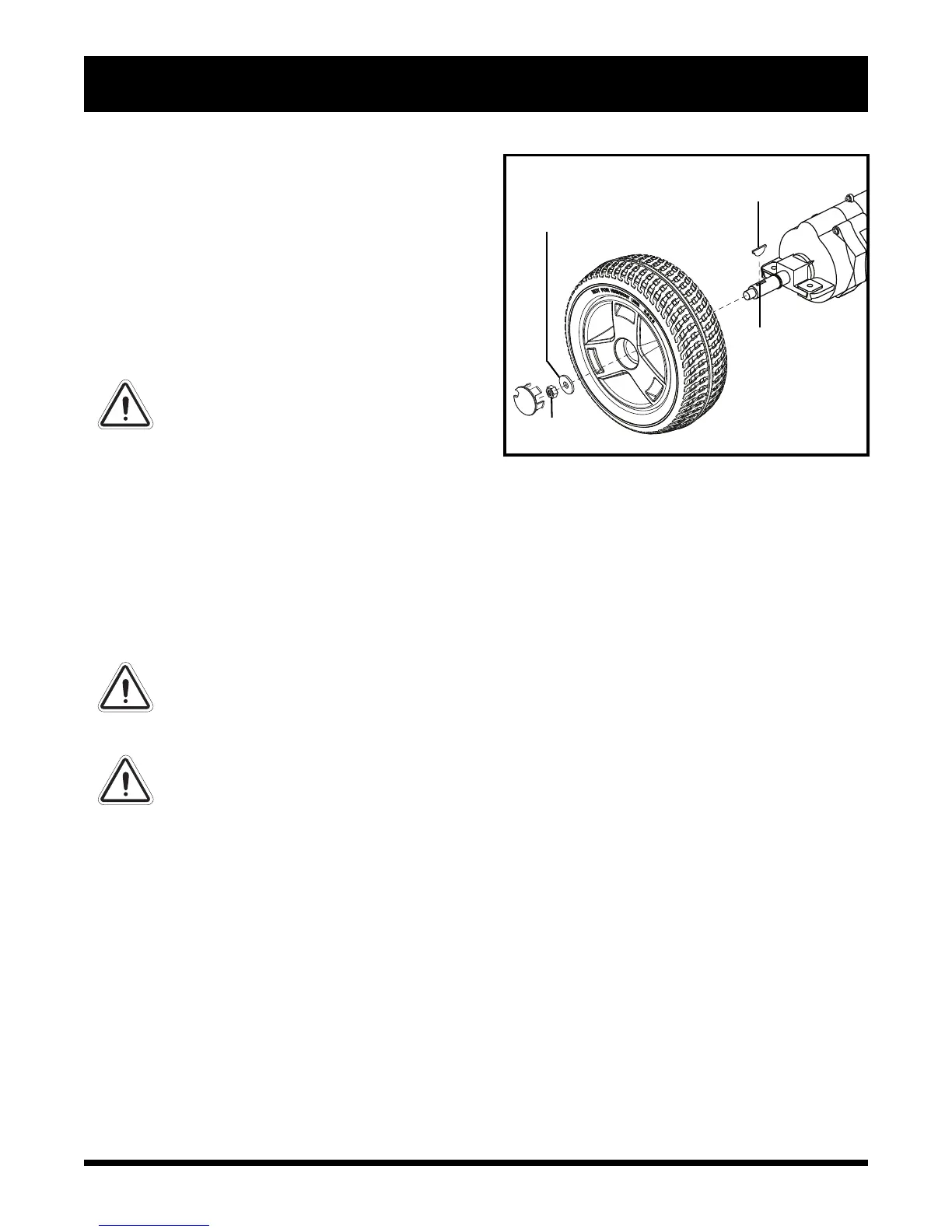 6. Reinstall the drive wheel nut and washer onto the axle and tighten.