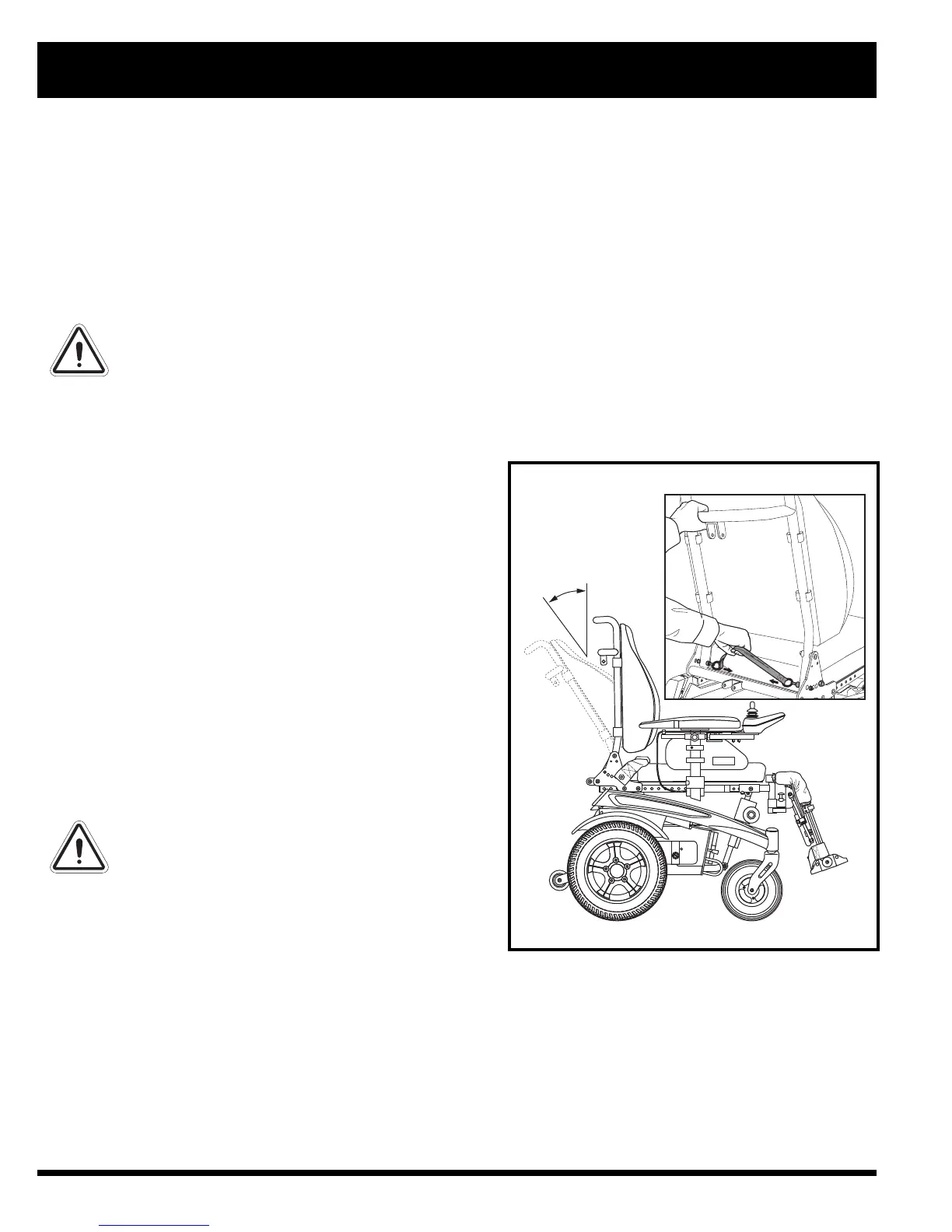 WARNING! Remove the occupant from the power chair before making any adjustments.