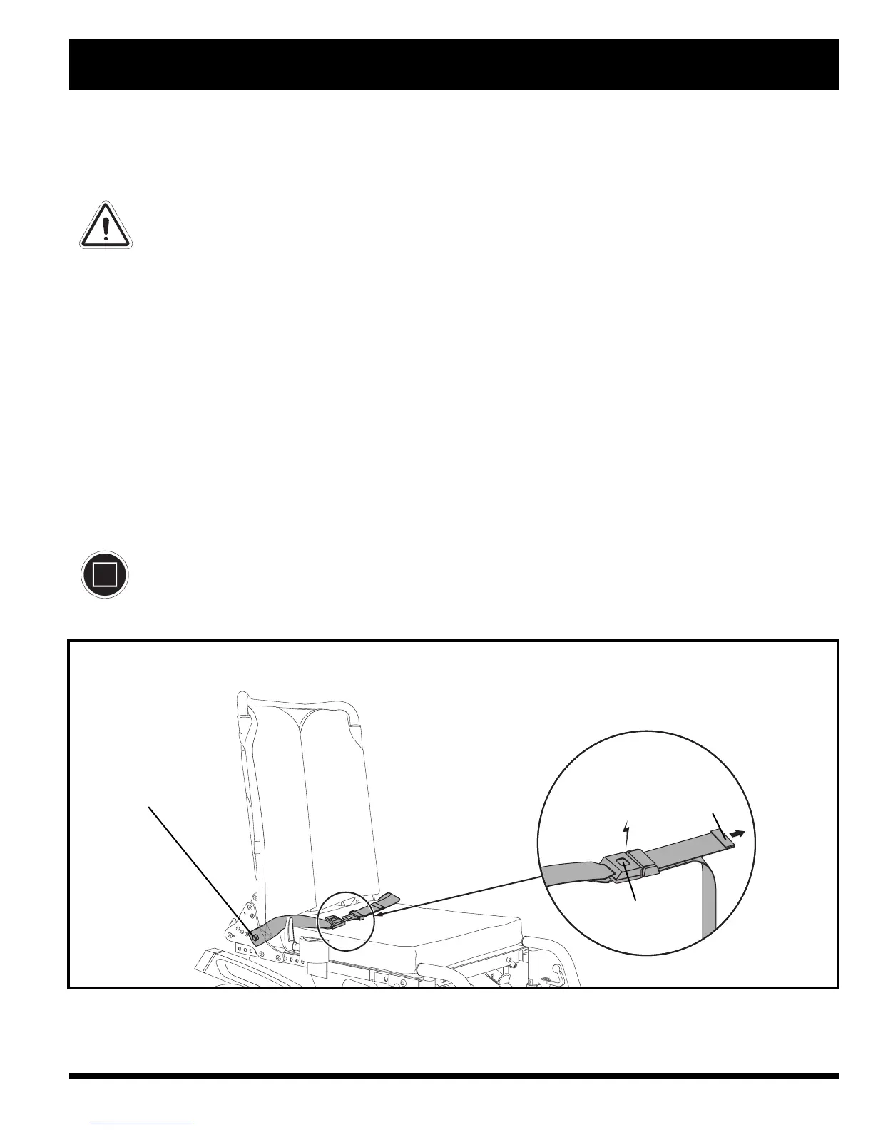 MANDATORY! Make sure the positioning belt is properly secured to the power chair and is