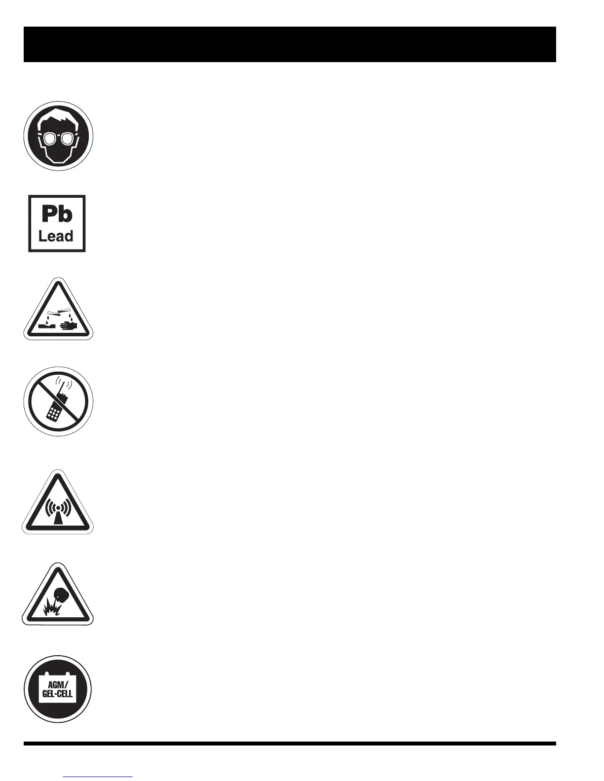 Use only AGM or Gel-Cell batteries to reduce the risk of leakage or explosive conditions.