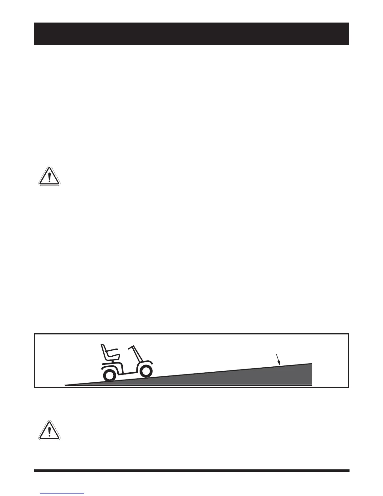 incline. Drive your scooter straight up the incline. This greatly reduces the possibility of