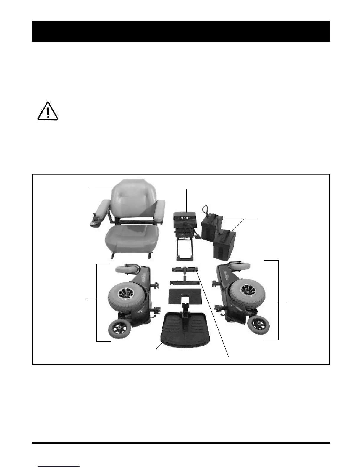 WARNING! Some power chair components are heavy. You may need assistance to lift or