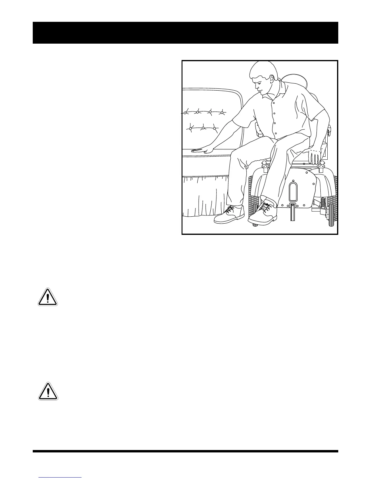 WARNING! Avoid putting all of your weight on the footrest. Such use may cause the power
